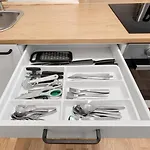 Design Suite - Sauna & Zentral - 75 Qm erbjuder ett kök samt matplats för gästernas bekvämlighet. En av tunnelbanestationerna i närheten av Design Suite - Sauna & Zentral - 75 Qm är Samariterstrasse, ungefär 10 minuter bort till fots.